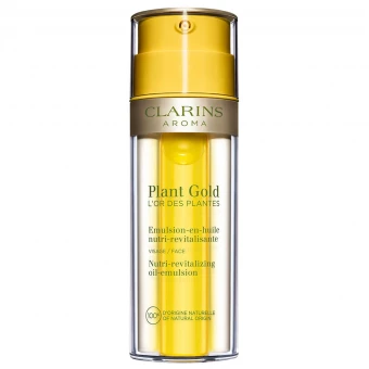 2-Phasen Öl-Fluid für das Gesicht. Inspiriert von den manuellen Anwendungsmethoden der Clarins Kosmetikerinnen hat Clarins einen neuen Zwei-Kammer-Flakon entwickelt, der Plant Gold – L‘Or des Plantes gewidmet ist. Eine einzigartige Doppelformel: das legendäre Huile Orchidée Bleue von Clarins kombiniert mit einer zarten Emulsion, die beim Auftragen zu einer leichten, nicht fettenden Textur verschmelzen und der Haut Komfort, Vitalität und Ausstrahlung verleihen.